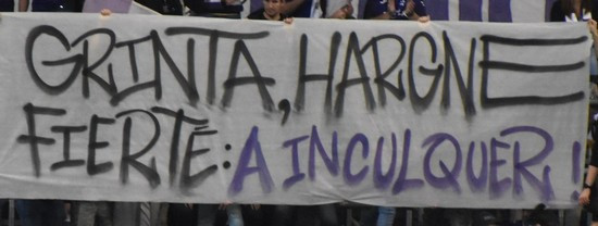 Du côté de la tribune Sud : on pouvait lire : "Grinta, hargne, fierté : A inculquer"