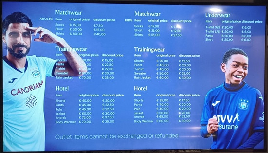AUTRE Le RSC Anderlecht vous propose à partir de ce mercredi 22 janvier des articles soldés jusqu'à 70%. L'outlet concerne des marchandises des deux saisons précédentes (saison 20-21 et saison 21-22).