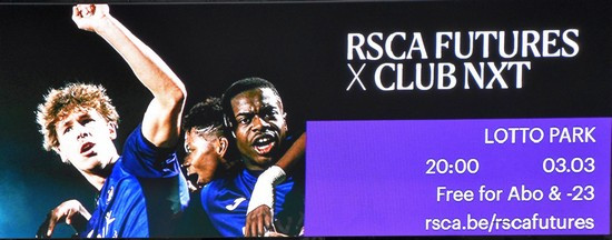 JEUNES - AUTRE Ce vendredi 3 mars à 20 heures, les U23 d' Anderlecht accueillent le Club NXT. L'entrée est gratuite pour les abonnés et les -23 ans pour les cinq matchs à domicile au Lotto Park. Un mini-abonnement pour les cinq matchs est en vente au prix de 25€. Des tickets individuels sont aussi disponibles. Cliquez sur Official ticketing Royal Sporting Club Anderlecht